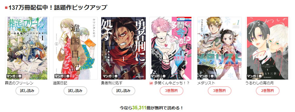 無料漫画がとても多い。