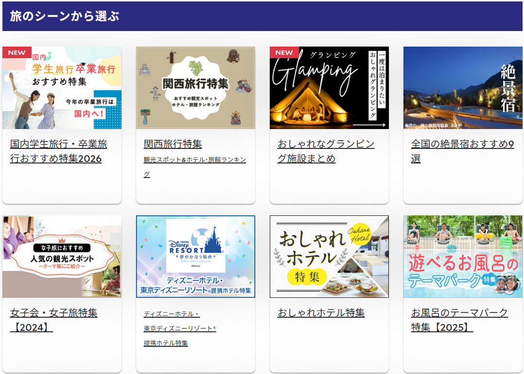 日本最大級の旅行会社が バックアップしているため、 掲載情報の正確性や トラブル時の対応力は 他の予約サイトと一線を画す。