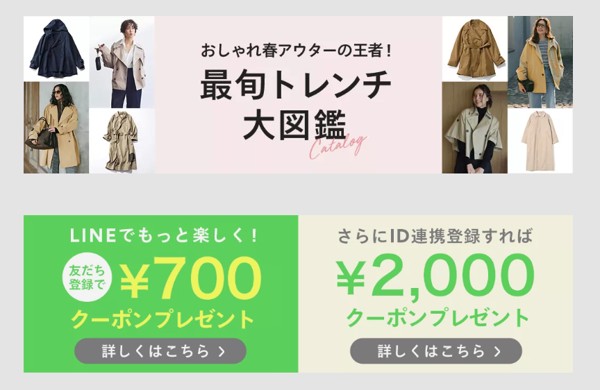 LINE連携で2,000円OFFクーポン、 誕生月にはバースデークーポン、 アンケート回答でサンクスクーポン、 突然届くシークレットクーポン、 毎月5のつく日はポイント5%還元、 毎日ログインするだけでも 月1枚のクーポンが手に入る。