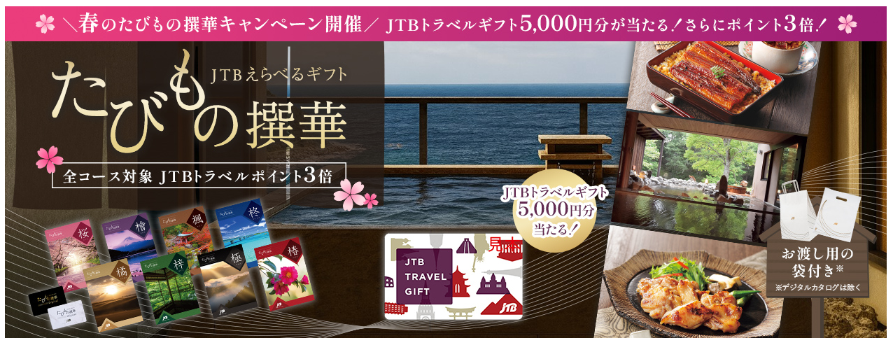 JTBの信頼と実績に裏打ちされた 「たびもの撰華」は、 贈る側も、贈られる側も、 笑顔になれる数少ない選択肢だ。