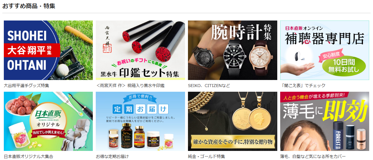 セイコー腕時計、補聴器、 マッサージチェア、健康器具、 寝具、キッチン用品、ファッション ──