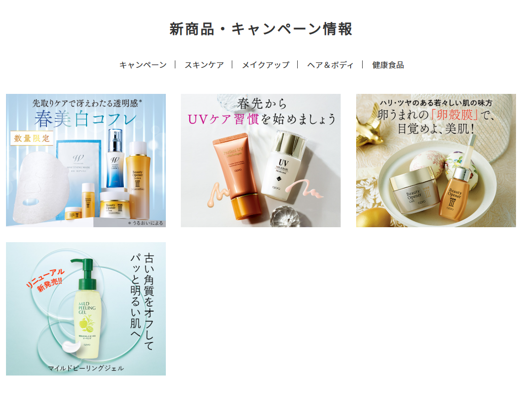 スキンケアからメイク、 ヘア&ボディケア、健康食品まで、 大人の美と健康を トータルでサポートしています。