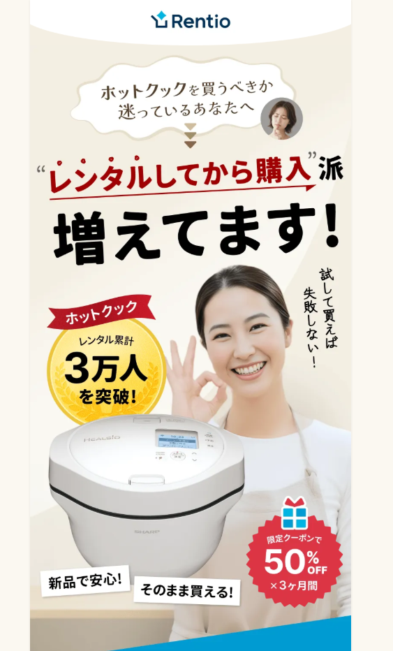だからこそおすすめしたいのが、 レンティオでホットクックをレンタル するという選択肢です。