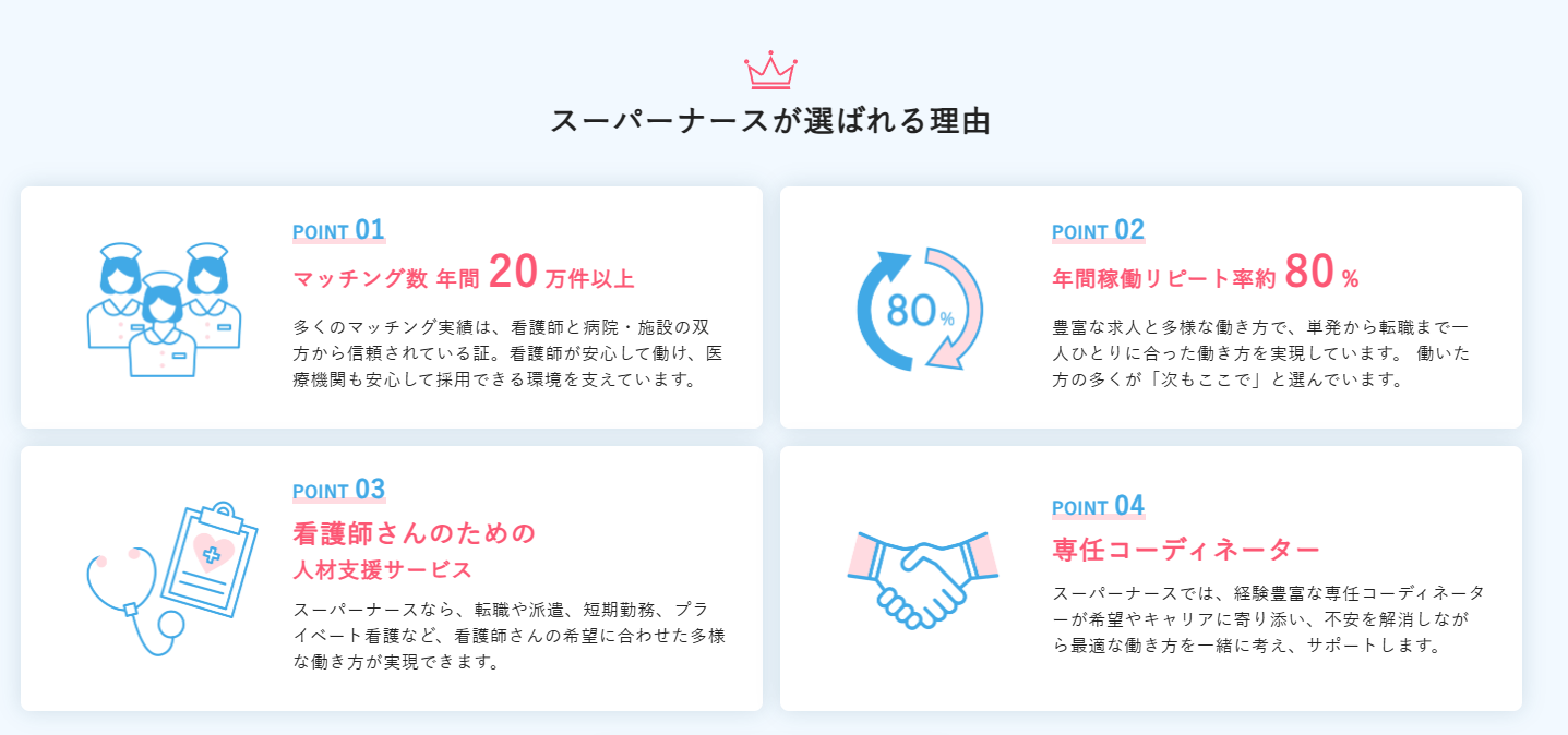 スーパーナースの最大の特徴は、 働き方の選択肢がとにかく多いこと。