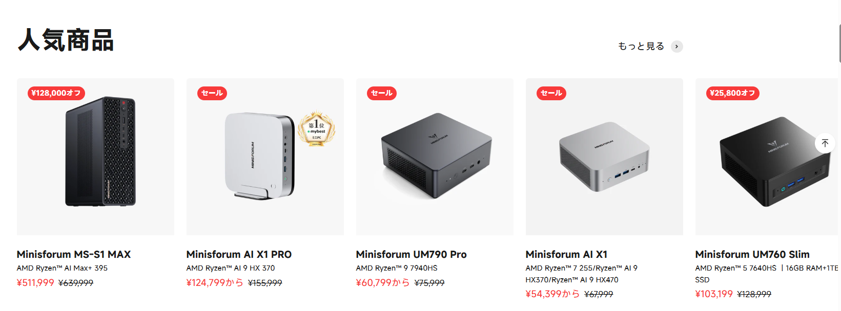 大手メーカーのデスクトップPCと同じスペックで比較してみてください。 MINISFORUMなら、数万円単位で安く手に入ることも珍しくありません。 余った予算で、憧れの高級キーボードや大型モニターを揃えることができます。