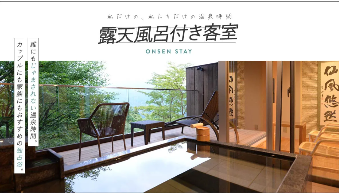 スマホでの探しやすさは業界トップクラス。 「露天風呂付き客室」「夜景がきれい」「記念日におすすめ」など、直感的なアイコンで、理想の宿が秒速で見つかります。