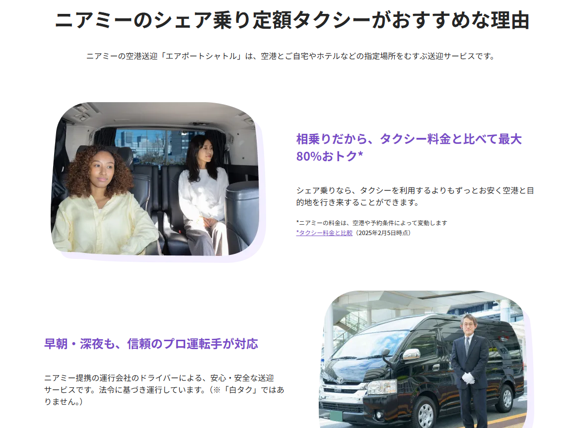 タクシーでもない、バスでもない。「自宅の玄関から空港まで」をリーズナブルにつなぐ、今もっとも賢い移動手段。なぜ旅慣れた人たちがこぞってNearMe.に切り替えているのか?その圧倒的なメリットを解説します。
